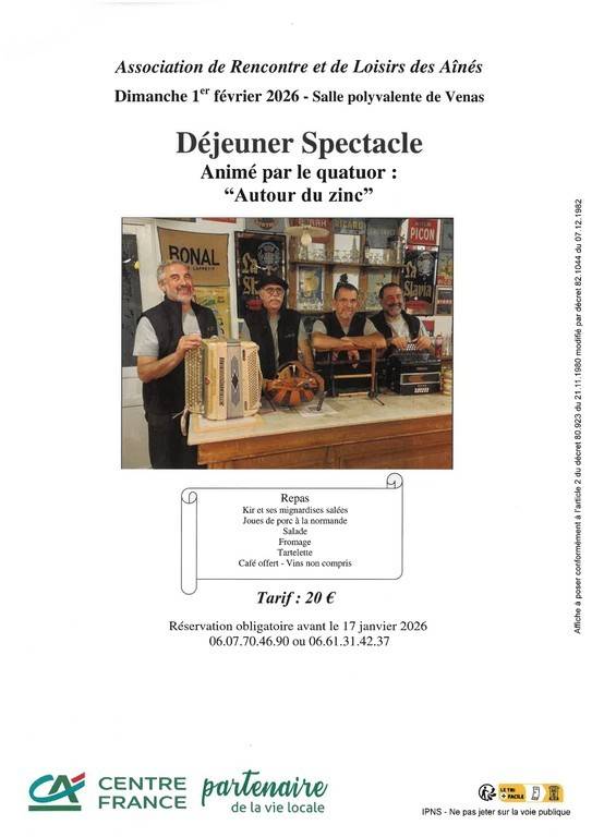 Réservation obligatoire avant le 17 janvier 2026 : 06 07 70 46 90 / 06 61 31 42 37