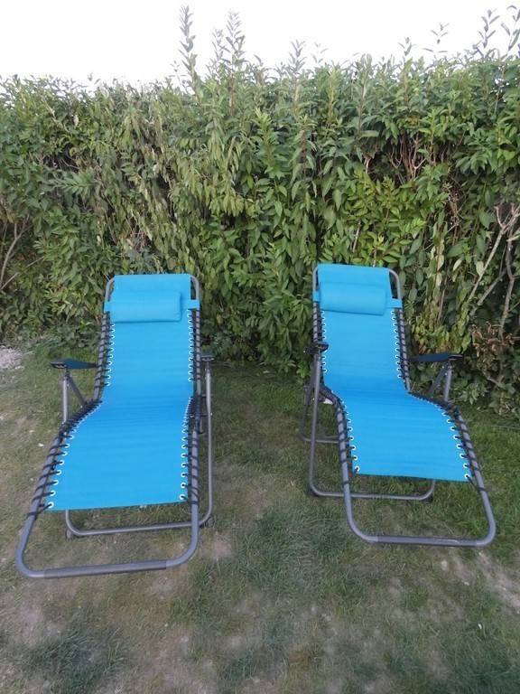Dans le jardin, vous pourrez griller votre viande ou poisson sur la plancha qui vous est fournie et vous détendre sur les chaises longues et manger dehors. Une table et des chaises ainsi qu'un parasol sont à votre disposition ainsi que deux vélos sur réservation préalable. Vous pourrez manger sur une belle terrasse en bois.